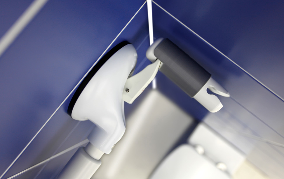 A fim de manter a alta força de vácuo das Barras Mobeli as alavancas de controle devem ser pressionada com força em direção à parede e empurrada para baixo.