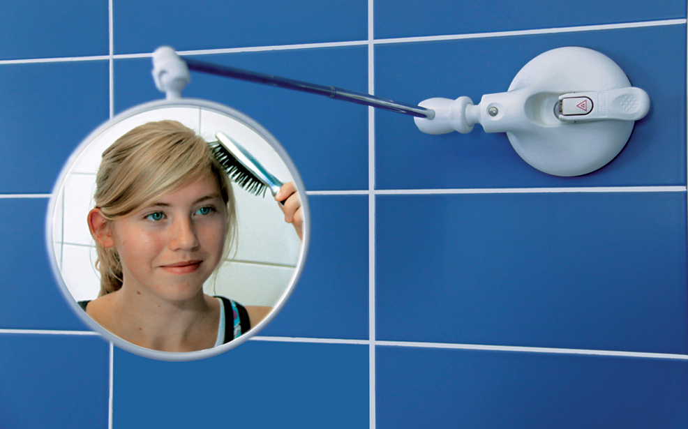 O espelho telescópico Mobeli é de fácil instalação. A pessoa pode se ver sempre mesmo sentada. O disco de fixação pode vir com ou sem braço flexível. Para comprar entre em contato por email ou por telefone.