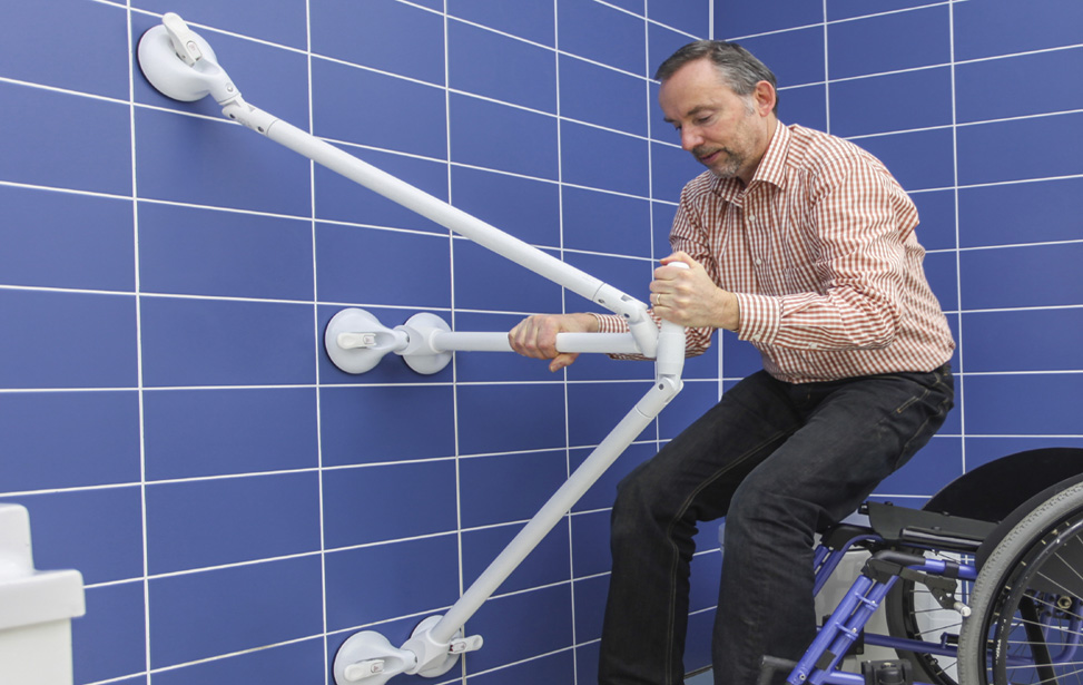 Alta capacidade de carga. A Barra a vácuo QuattroPlus pode ser fixada na parede e em uma quina de um canto; serve como Barra de treinamento horizontal e relocação de assistência.