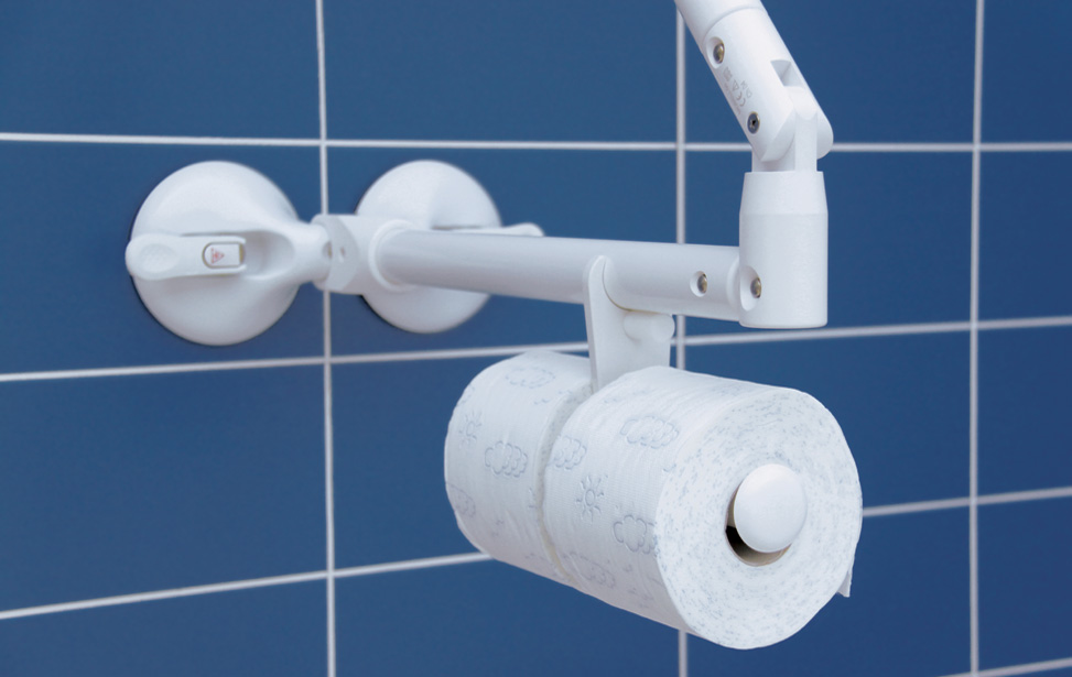 Este suporte para dois rolos de papel higiênico pode ser simples e rapidamente anexado para o QuattroPower. Este acessório também pode ser fixado em quase todas as outras Barras móveis do sistema Mobeli.